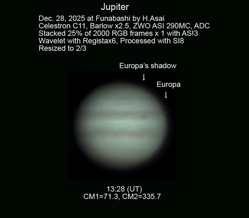 12/28 ガリレオ第2衛星のエウロパとその影が見えます。
