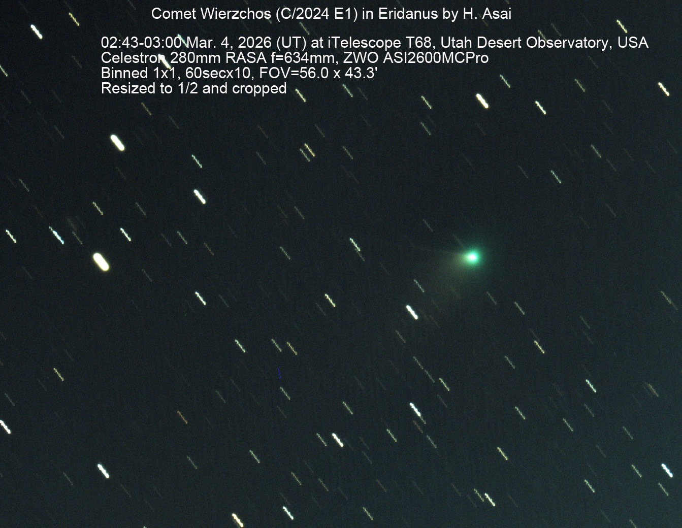 ヴィエシュホシュ彗星画像(C/2024 E1) 2026年3月4日(UT) (Utah Desert Observatory, USA 淺井撮影)
