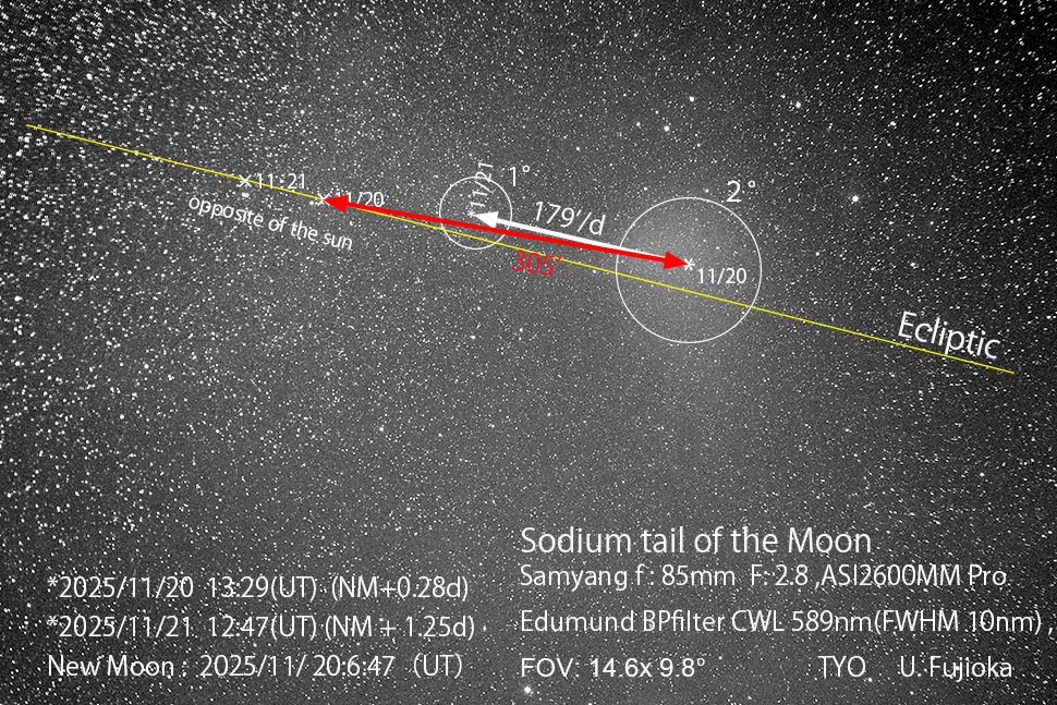 月のナトリューム尾の位置の予報は無いので、撮影するには何らかの方法で目星を付けなければなりません。