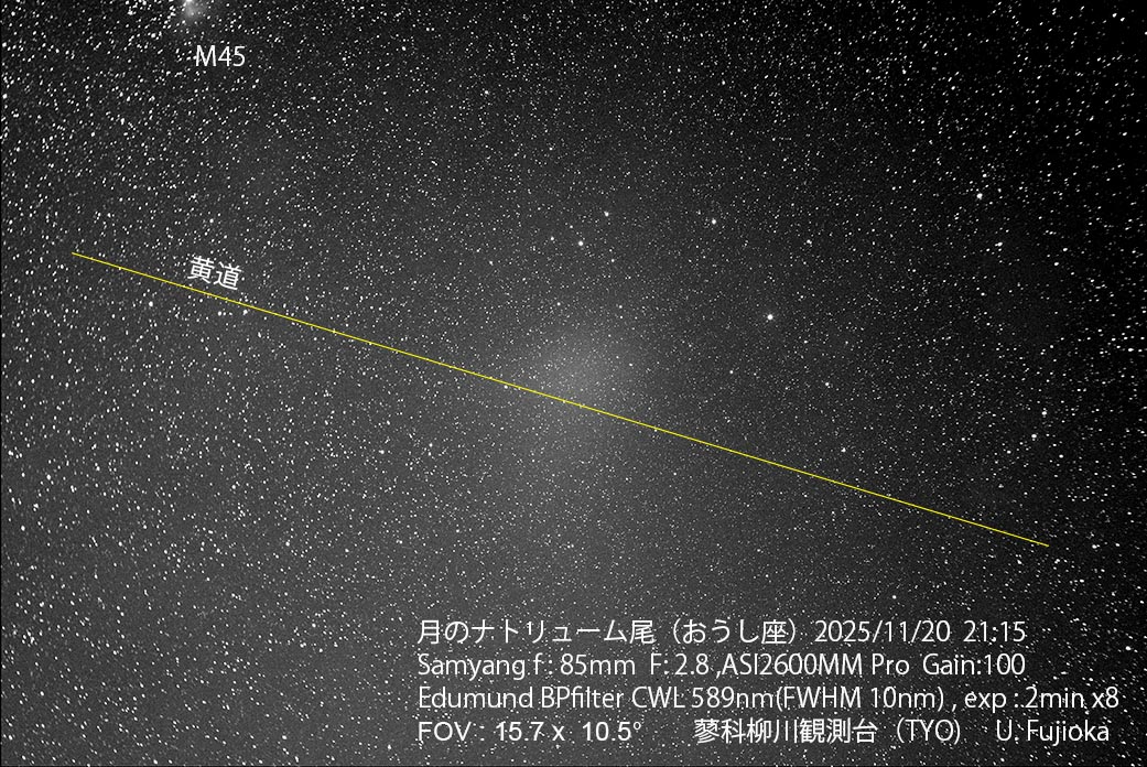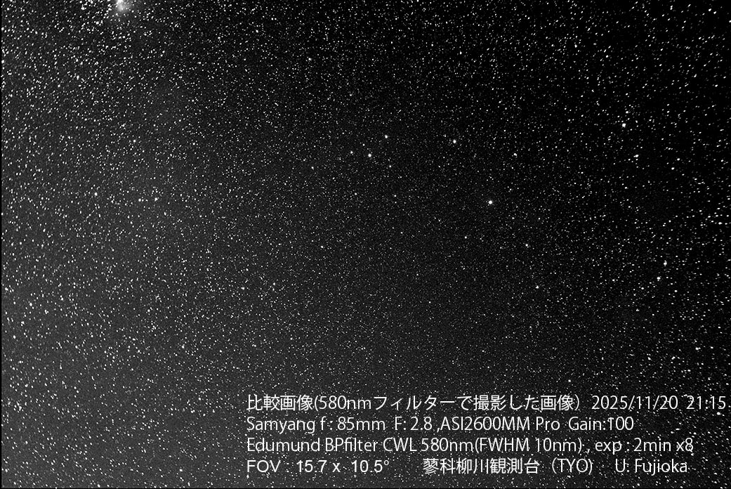 これだけでは写ったものが果たしてナトリュームの光か確証が持てないので、隣接する波長580nmのフィルターでも撮影して比較をするようにしています。