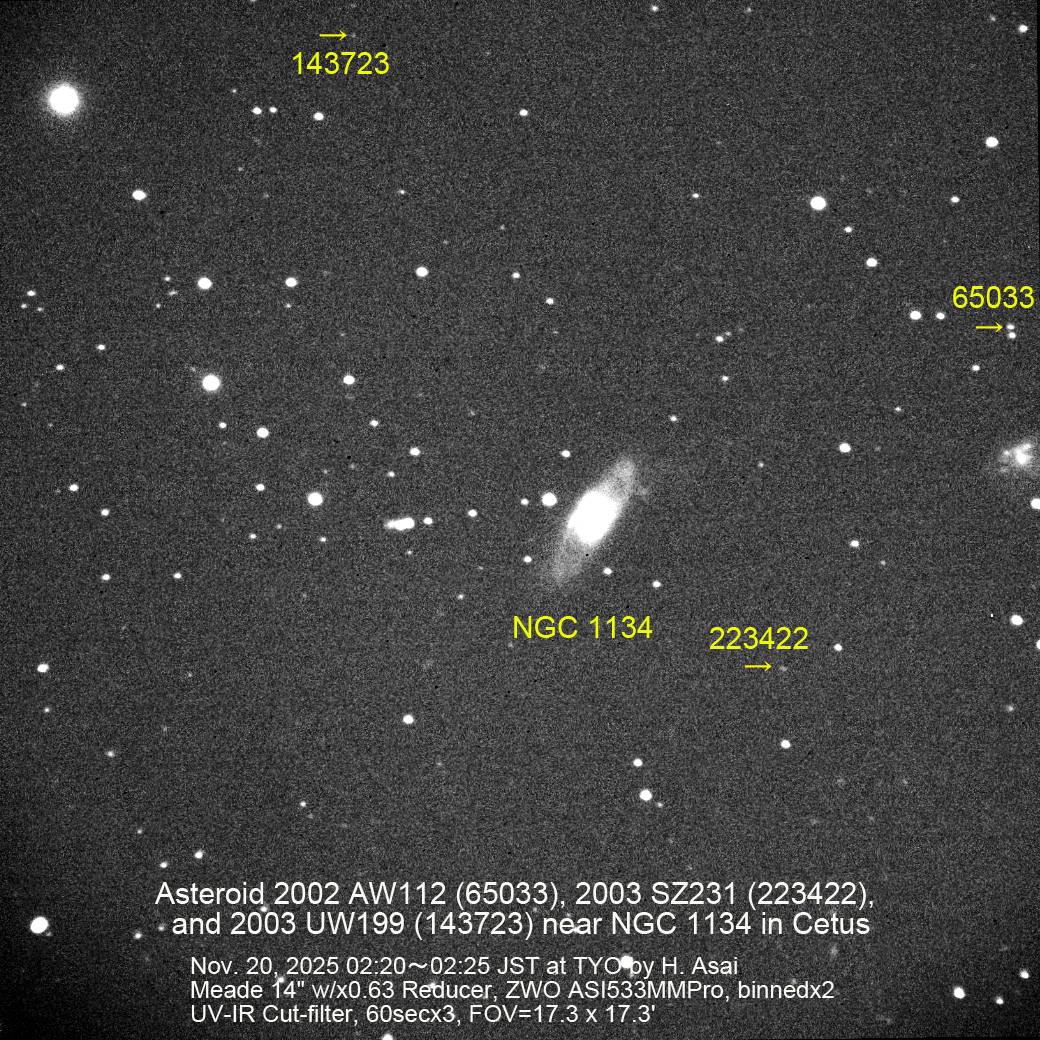 小惑星 2003 UW199 (143723) 画像 2025/11/19 (UT)