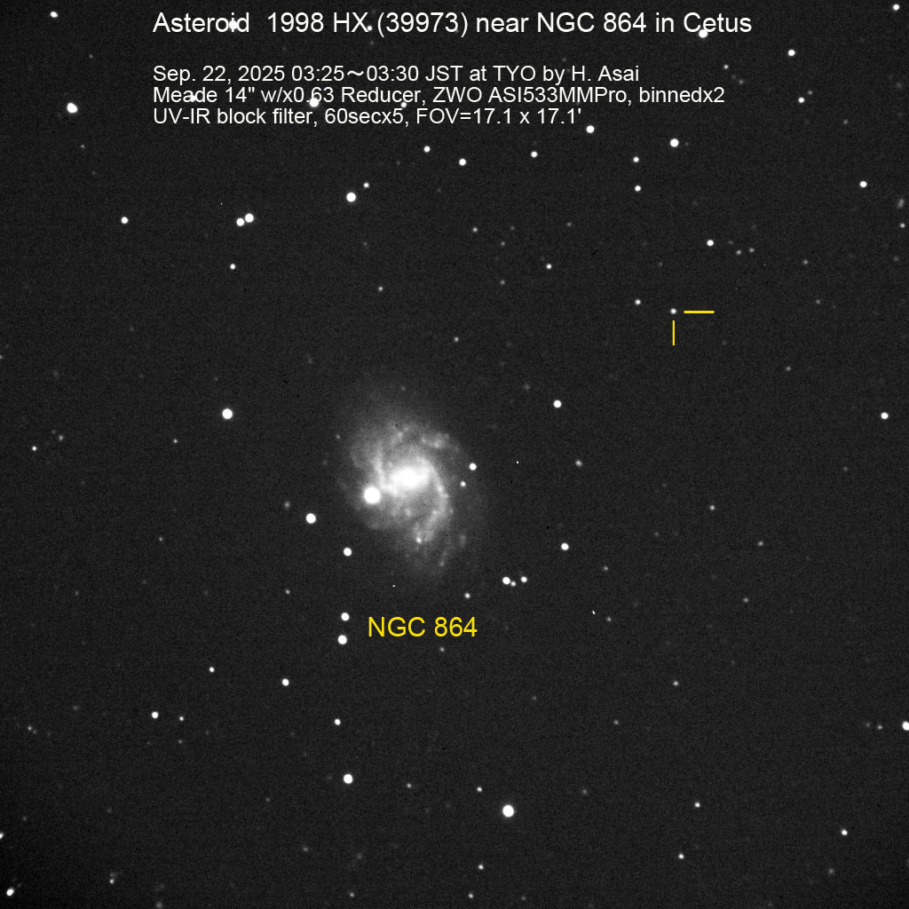 小惑星 1998 HX (39973) 画像 2025/09/21 (UT)