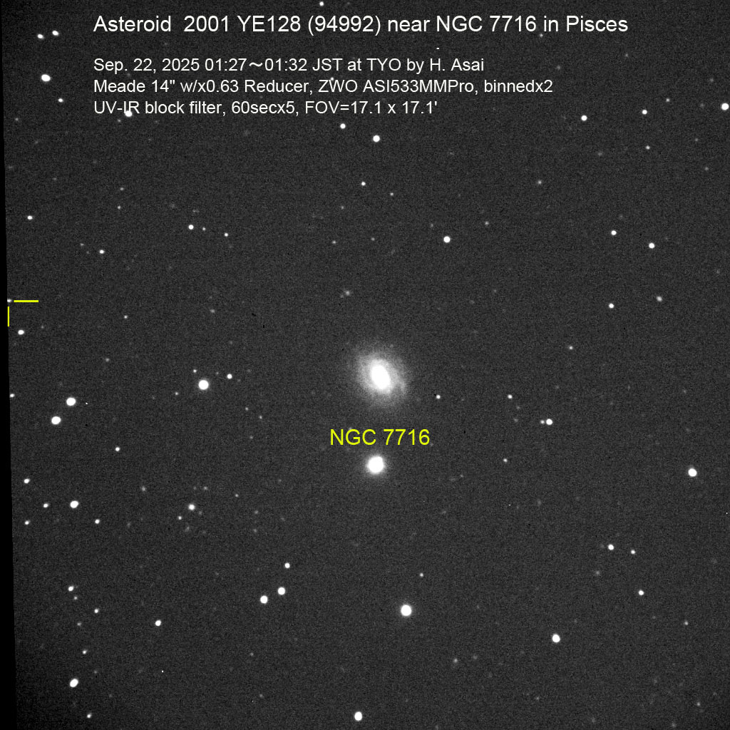小惑星 2001 YE128 (94992) 画像 2025/09/21 (UT)